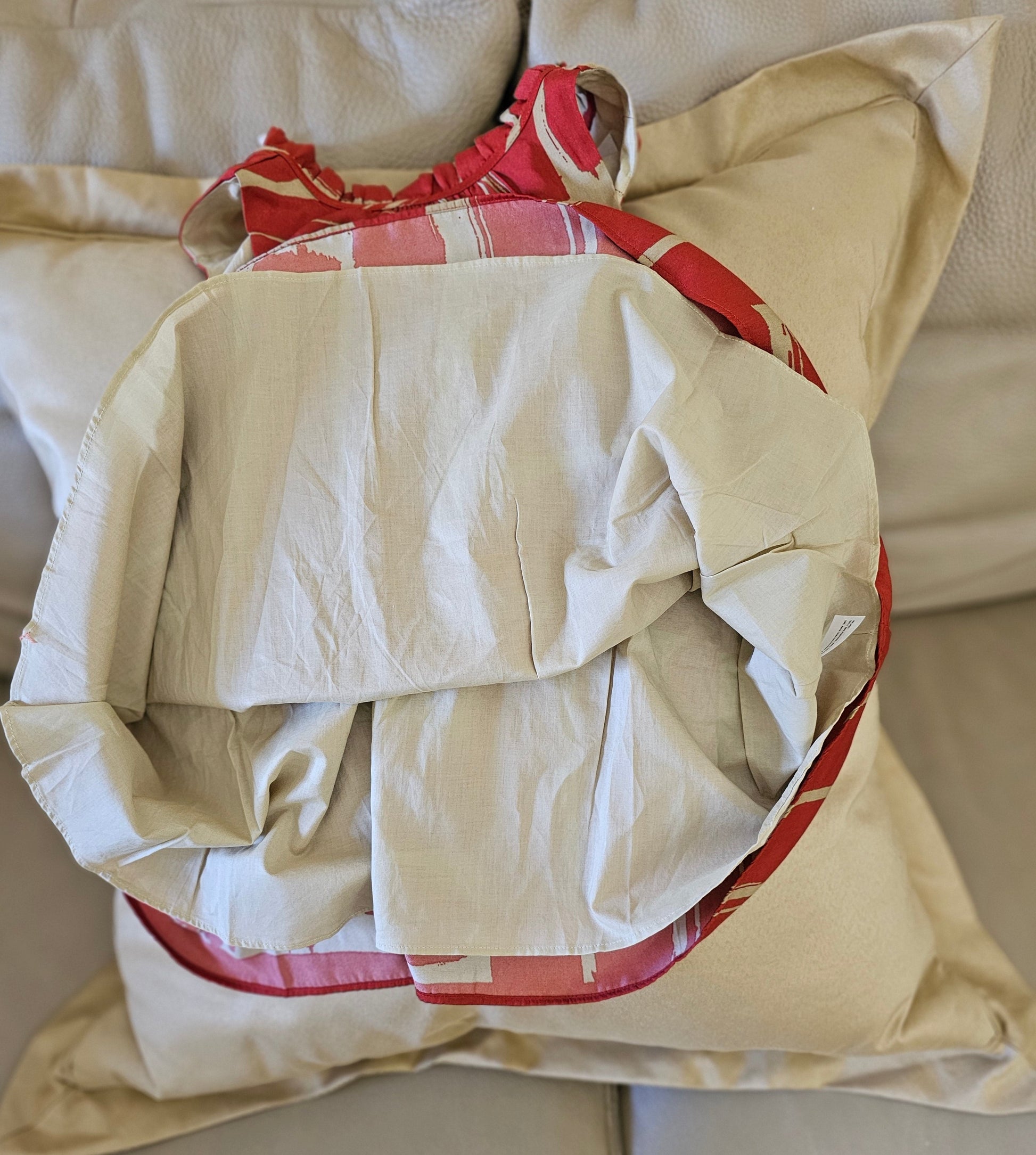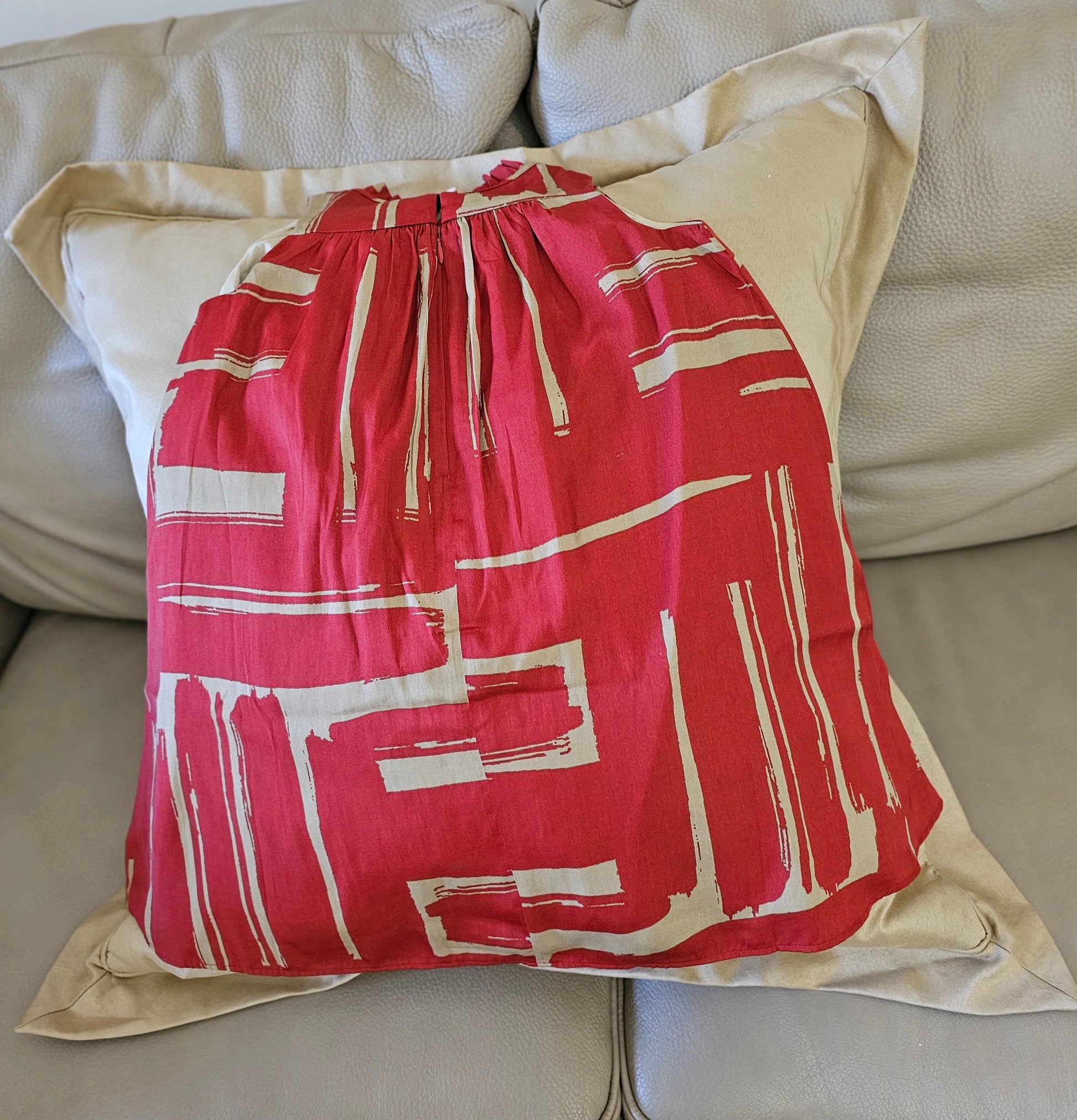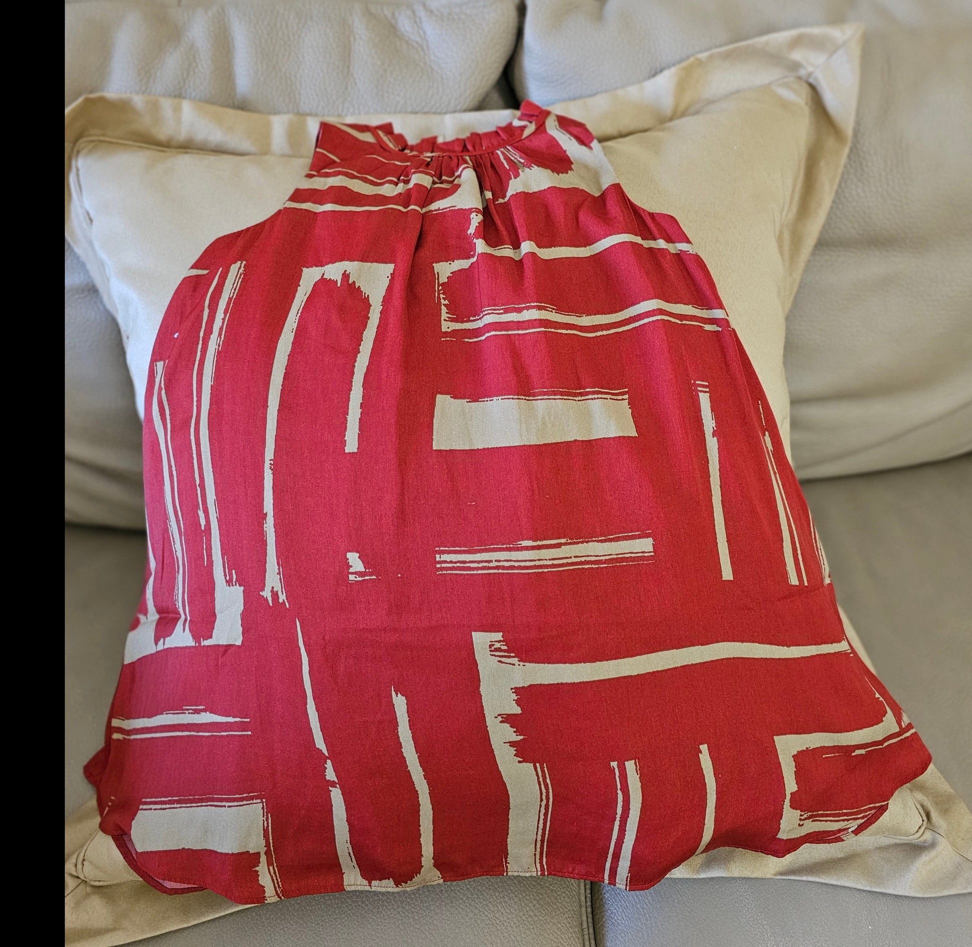 Banana Republic Red and Tan Swing Dress. Silky like red and tan beautiful sleeveless lined dress with ruffled collar, back zipper and pearl button closure. Multi-faceted wear. Girls - Size 3 Years