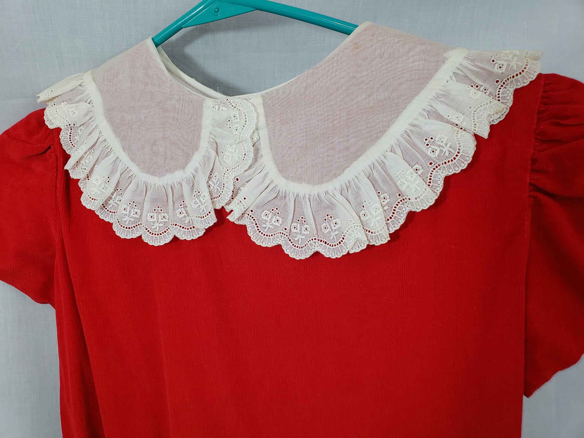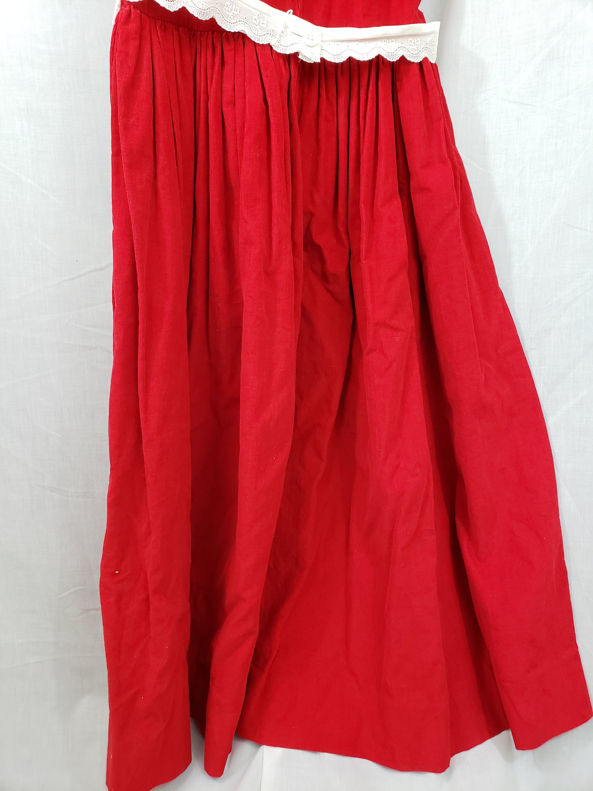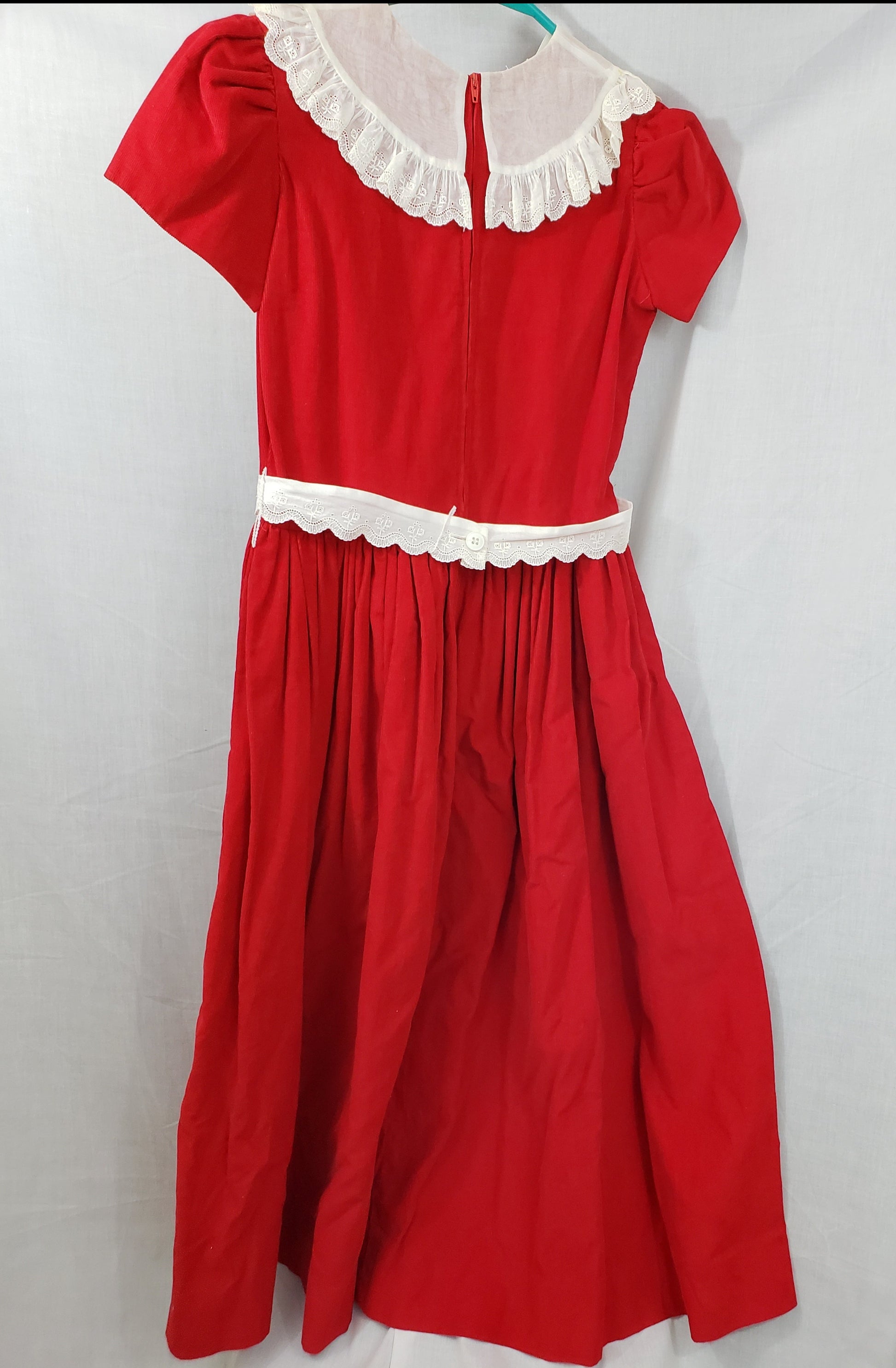 Girl's adorable Classic Red Corduroy Dress, with lace collar and sash. Size 14.