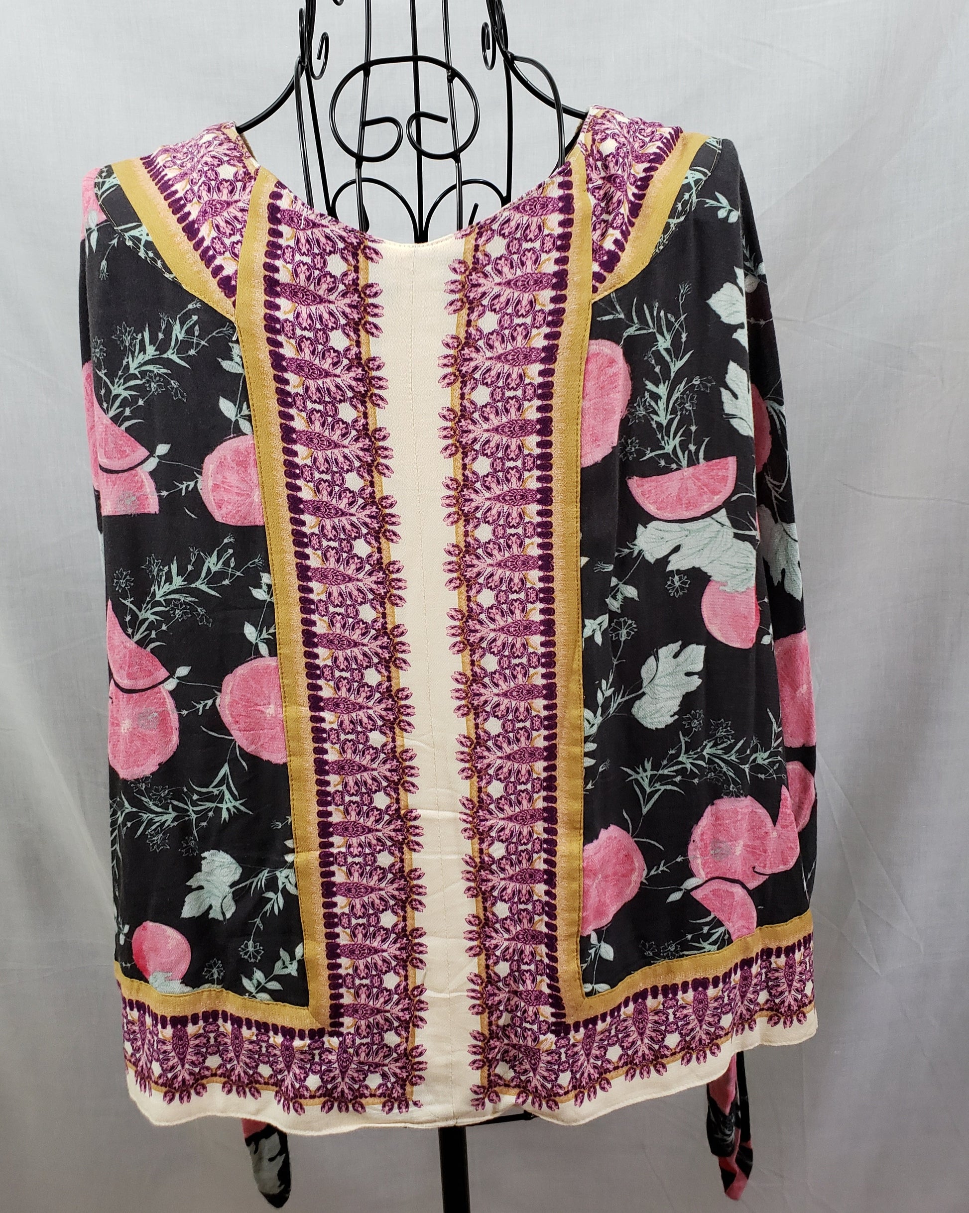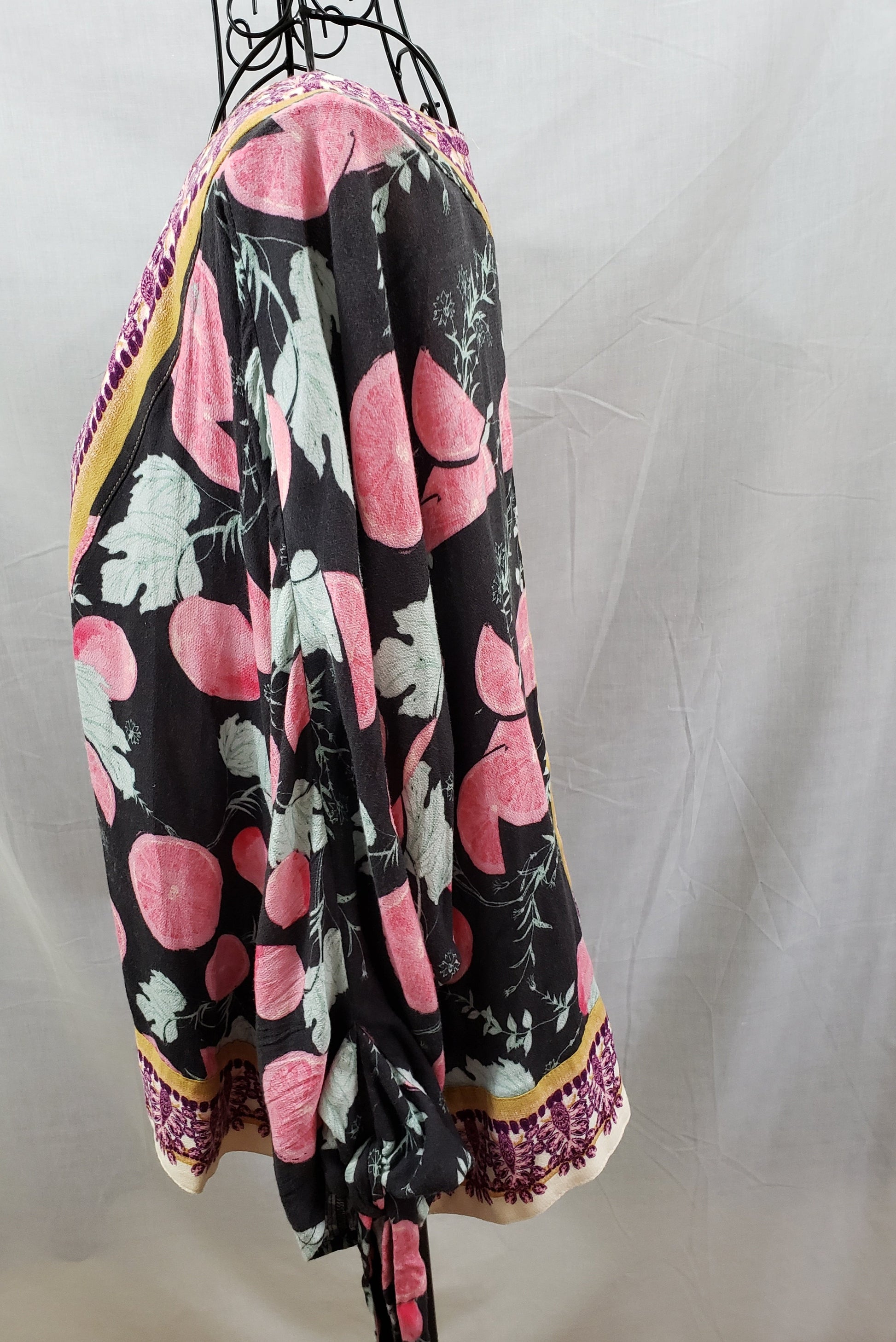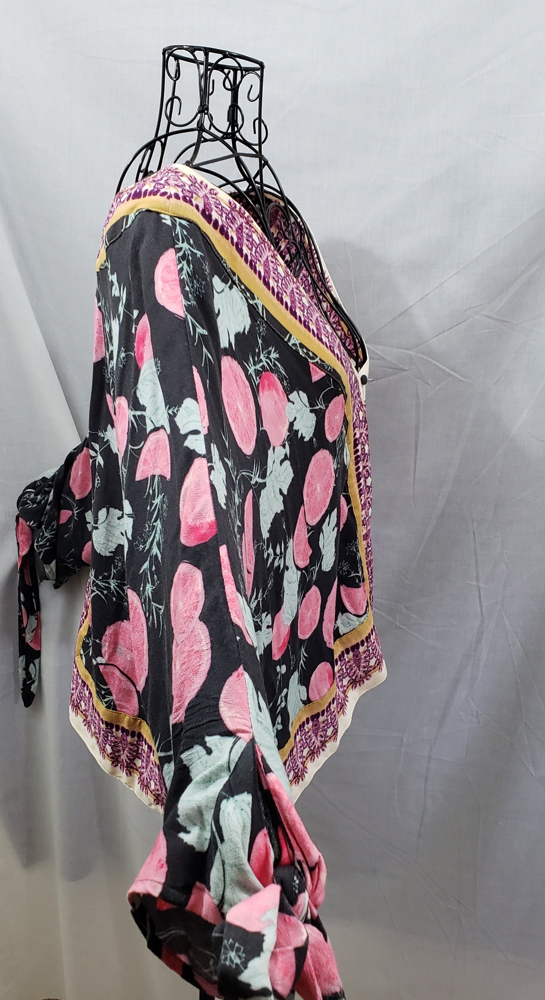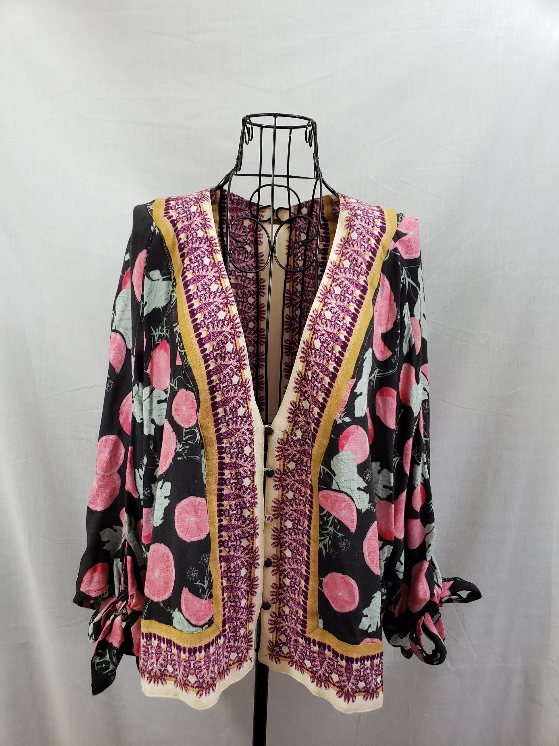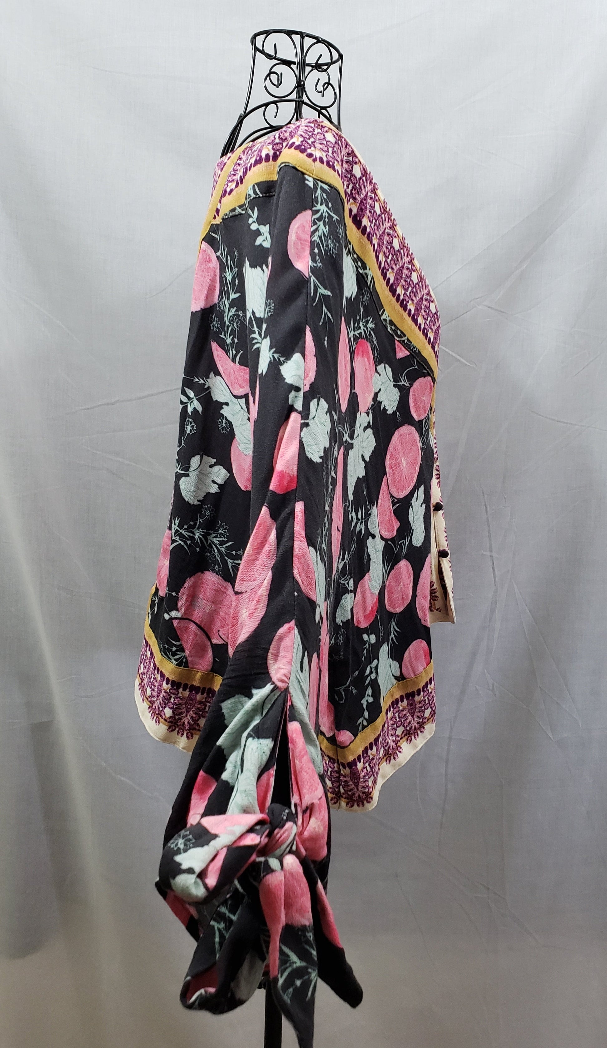 Free People - so free and flowy in a perfectly printed fabrication, this essential kimono is featured in a button-front design with exaggerated slightly wide sleeves and ties for added dimension. Fabulous. Perfect Condition.