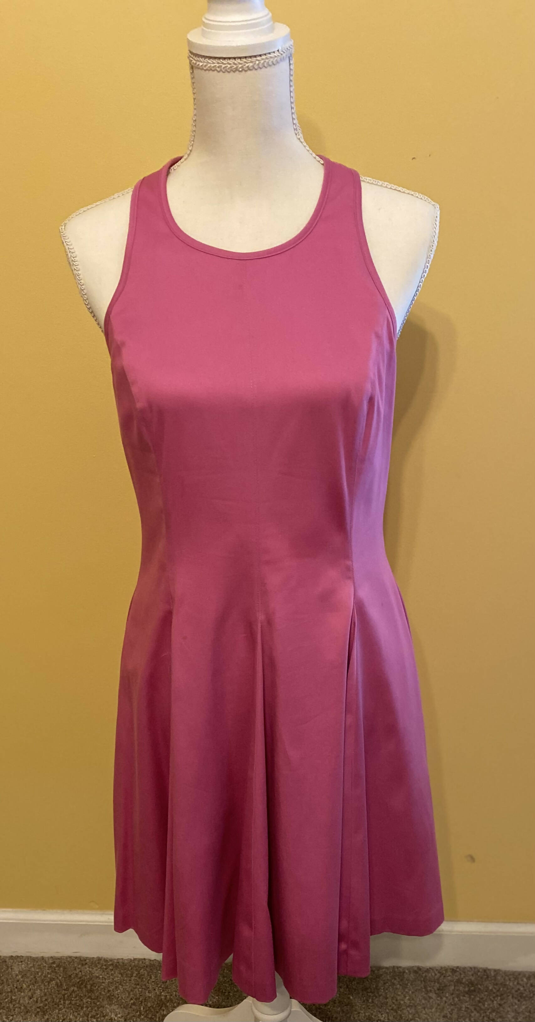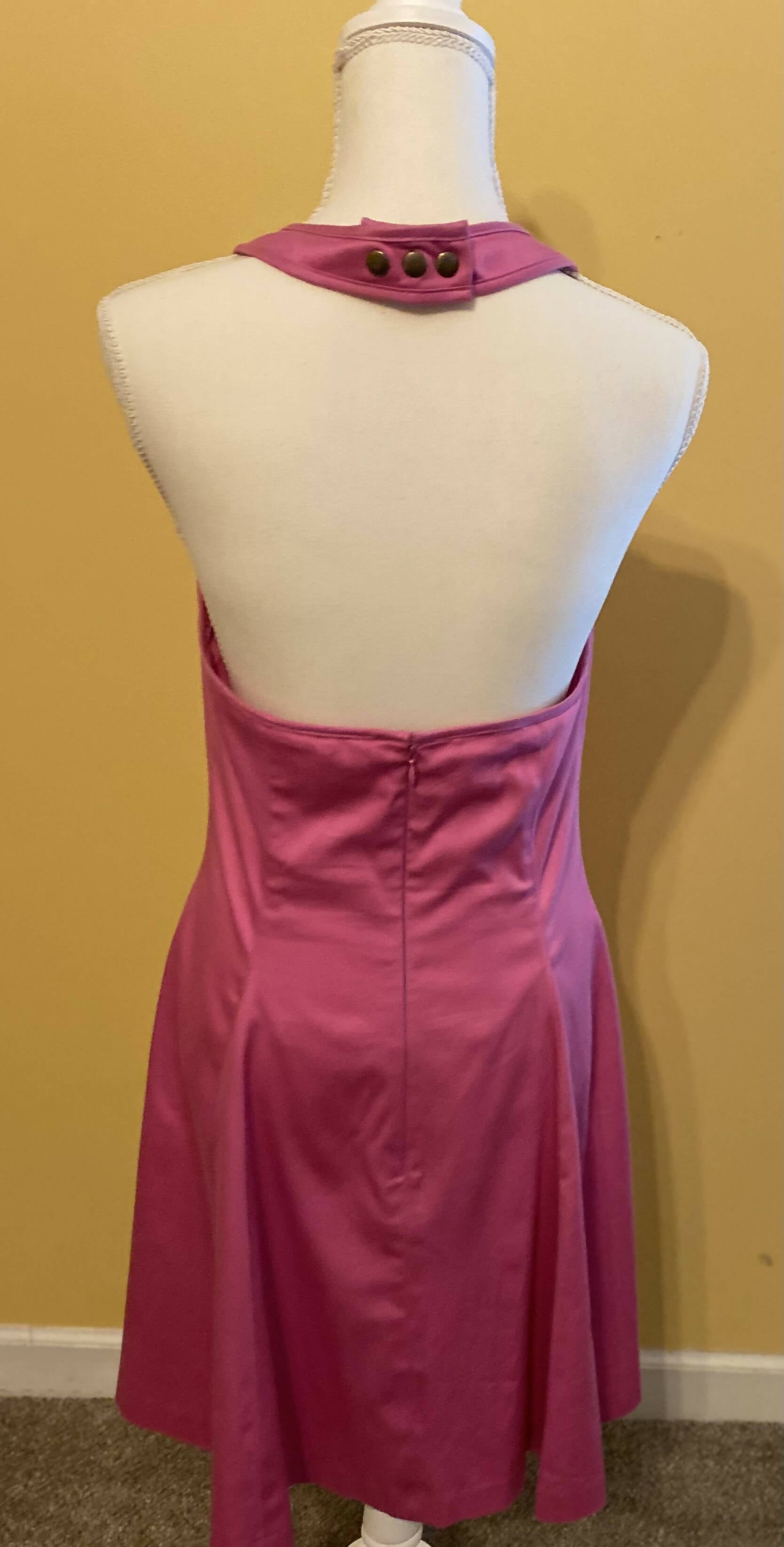 Pink, Halter Neckline, Zip Closure, Sleeveless, Side Pockets, Size 10, Solid, Pleats, Machine Washable,