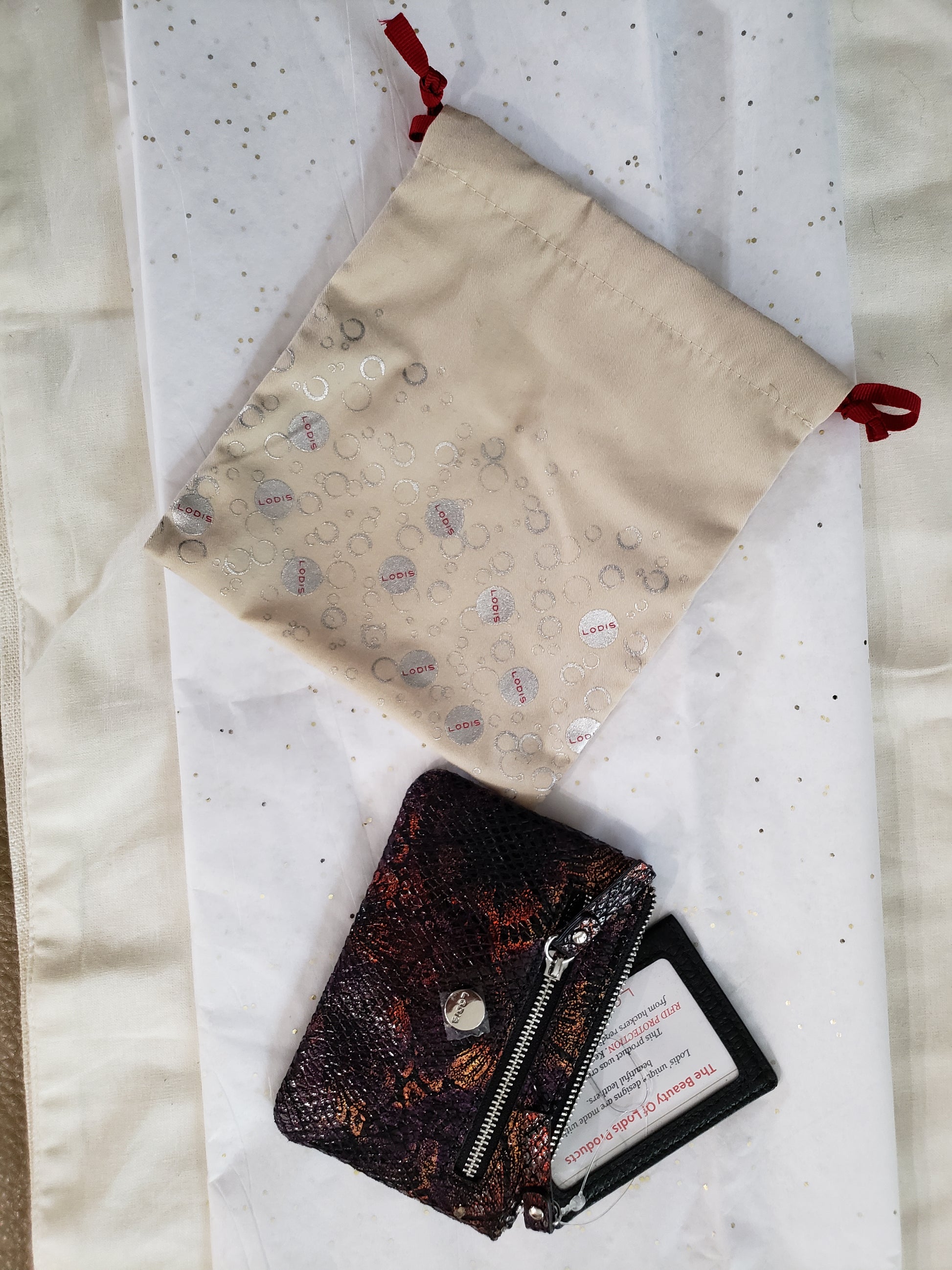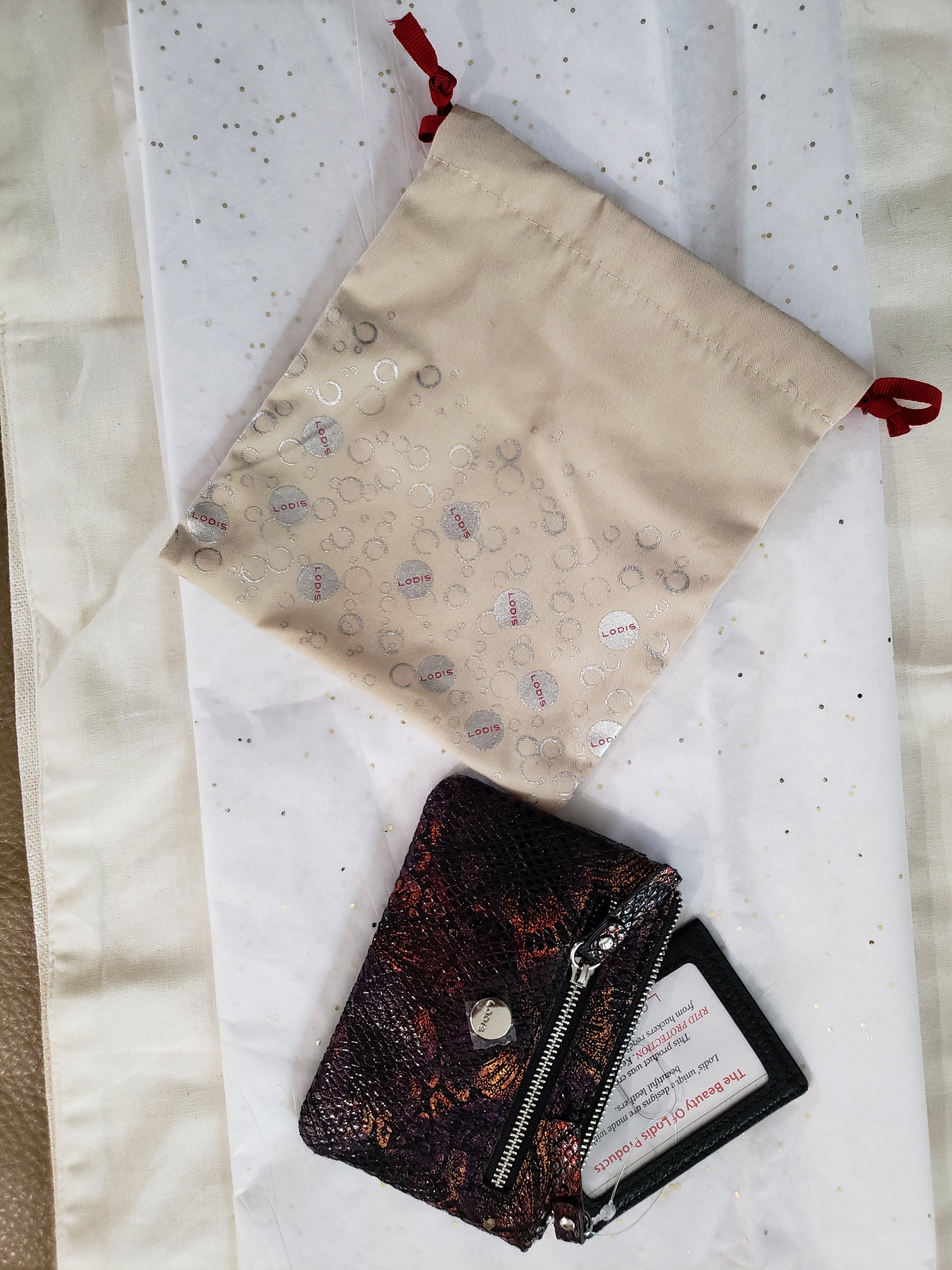 New - Lodis leather top zip, side zip and side pocket wallet with detachable credit card and license holder. Lodis product was created with RFID (Radio Frequency Identification Technology) Protection. Keep your identity safe from hackers reading your information. Lodis cloth logo bag included.