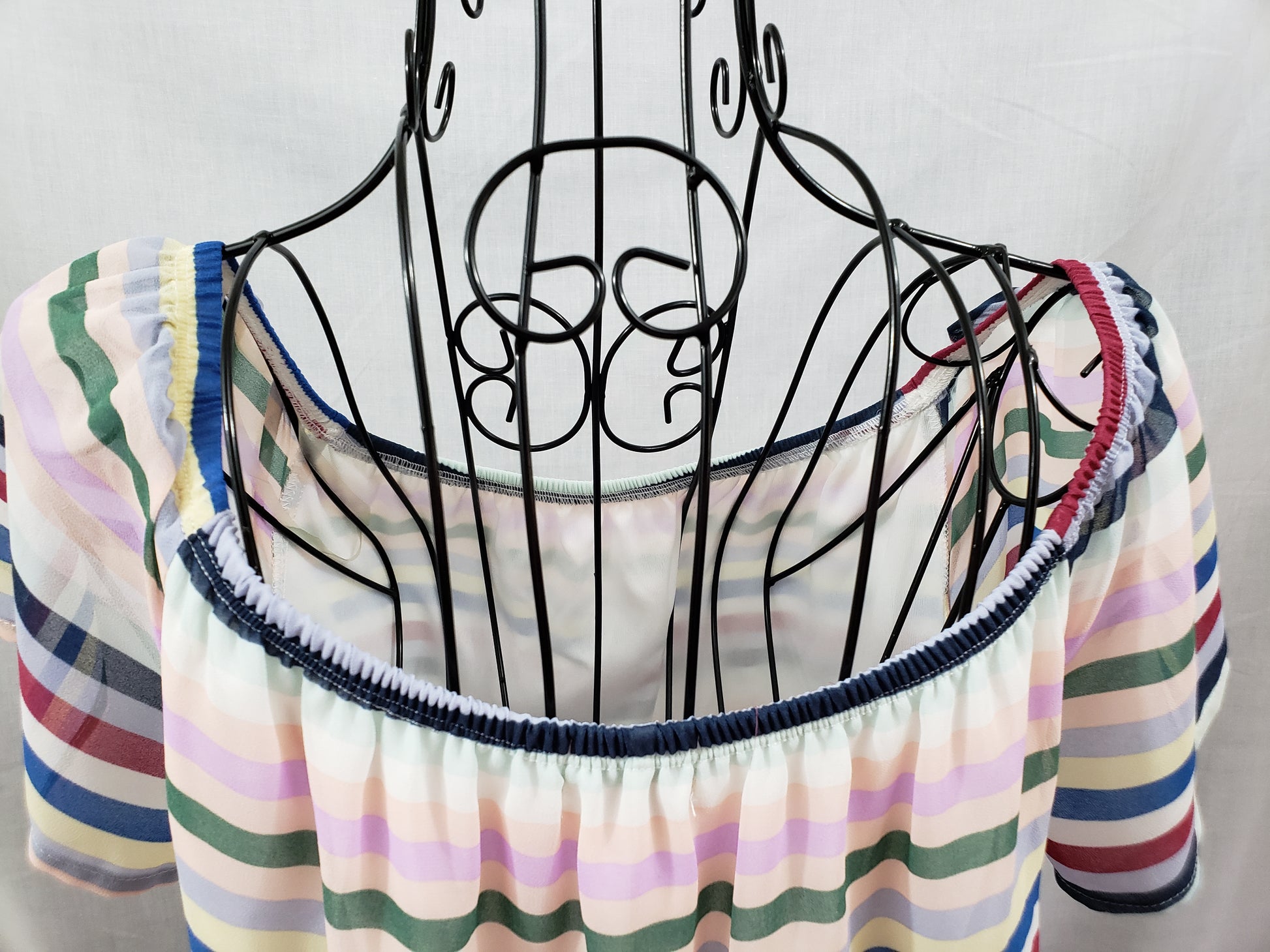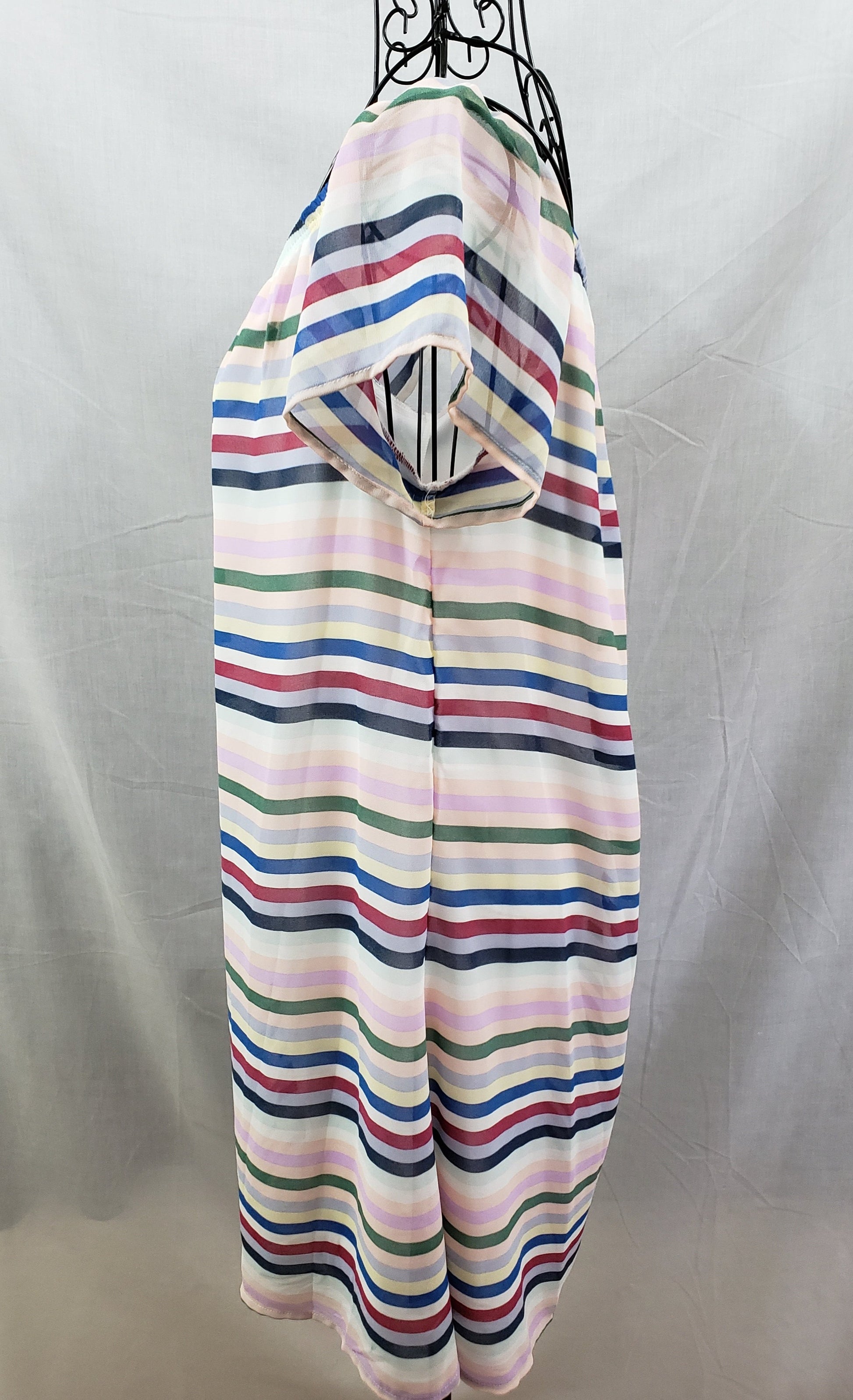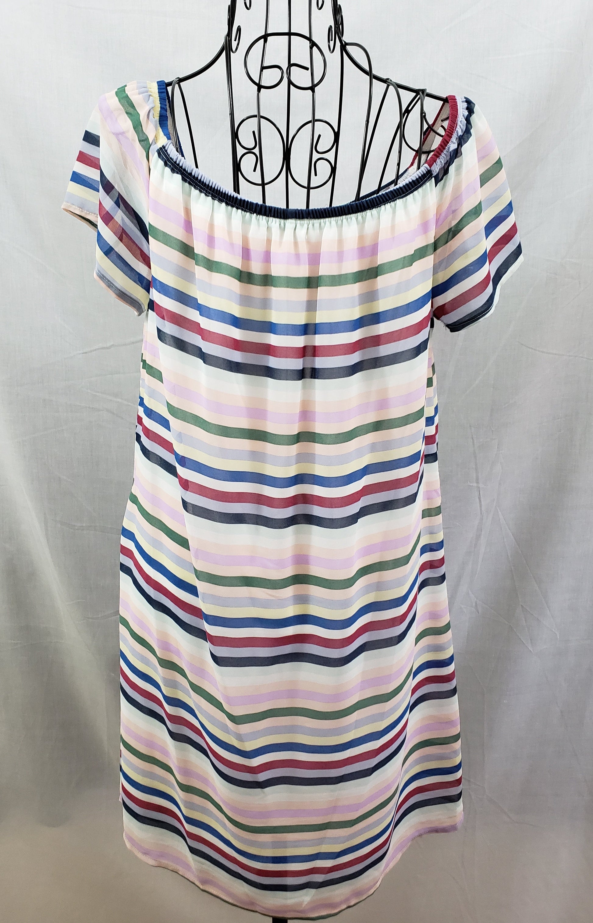 Soul Mate short-sleeved multi-color striped thigh-length blouse. Lined. Size M.