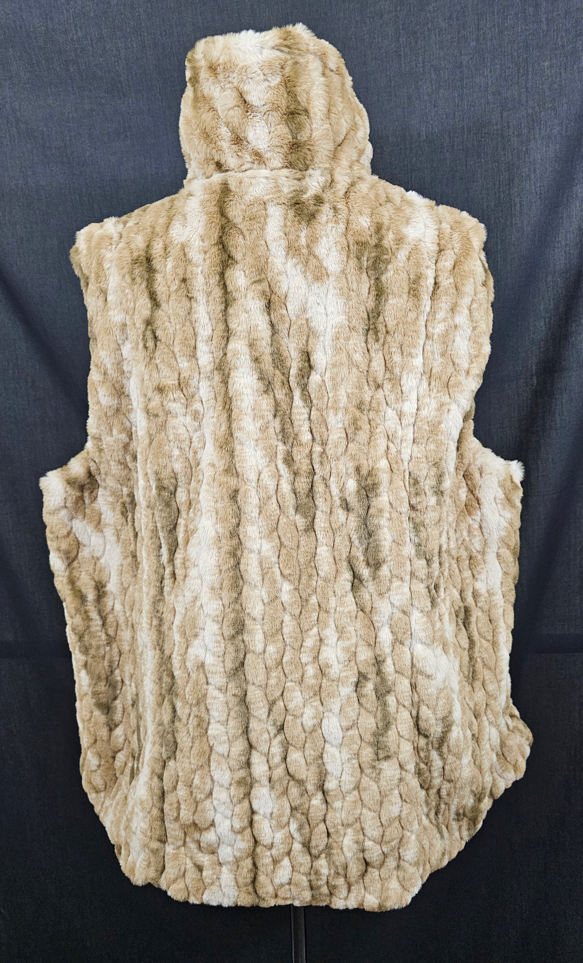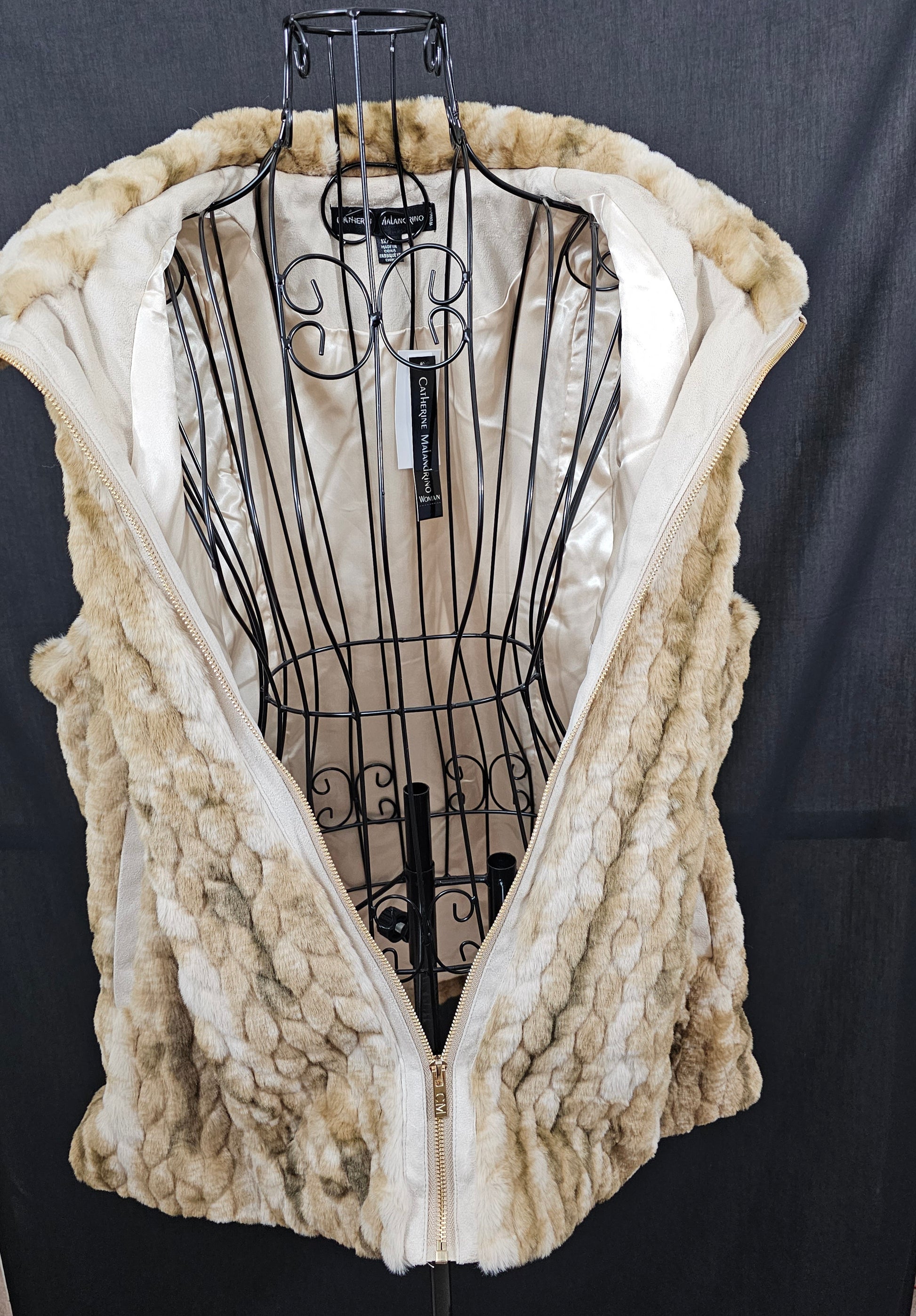 Catherine MaLandrino Women's Fur Faux Mock Neck Lined Sleeveless Full Zip Vest with Pockets - Tan. Size 1X. New. Soft cuddly feel.